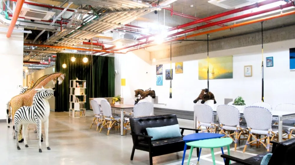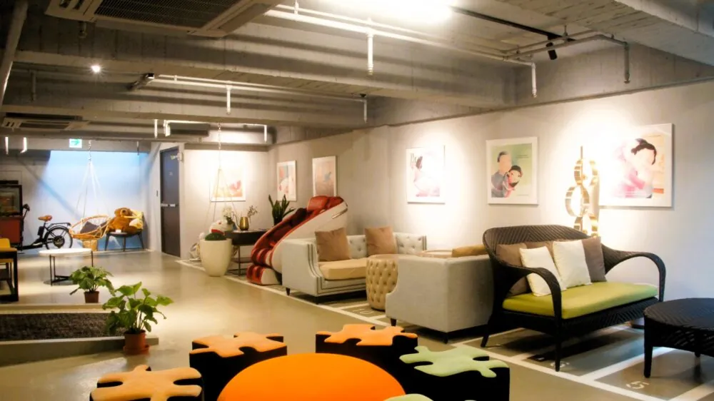 ‘러만디’ 공용 라운지 공간은 투숙객이라면 누구나 자유롭게 이용하실 수 있습니다. 공간은 피트니스 구역, 미팅 공간, 소파 휴게 공간, 도서 열람 구역과 티타임을 위한 다과 코너까지 다양하게 구성되어 있습니다. 예술 오브제와 대형 인형 전시가 함께 어우러져 여유롭고 감각적인 분위기를 더합니다. 공간은 유연하게 활용 가능하며, 필요 시 사전 예약을 통해 대관도 가능합니다. 이용 시 모두를 위해 깨끗하게 사용해 주시고, 쾌적한 공간 유지를 위한 배려를 부탁드립니다.