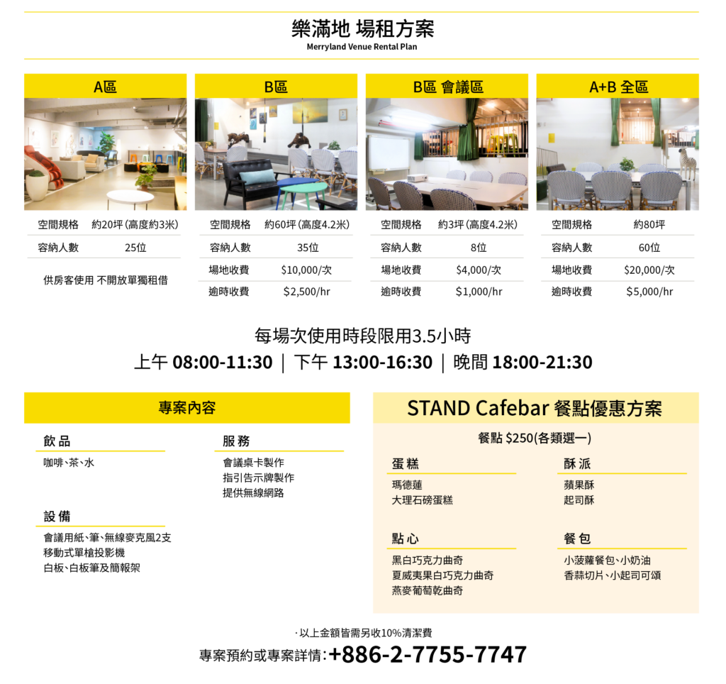 ※Merryland 為自助式共享空間,歡迎自由使用並尊重他人,共同維護整體品質與使用安全。若有設備使用需求或特殊狀況,建議洽詢櫃台協助。